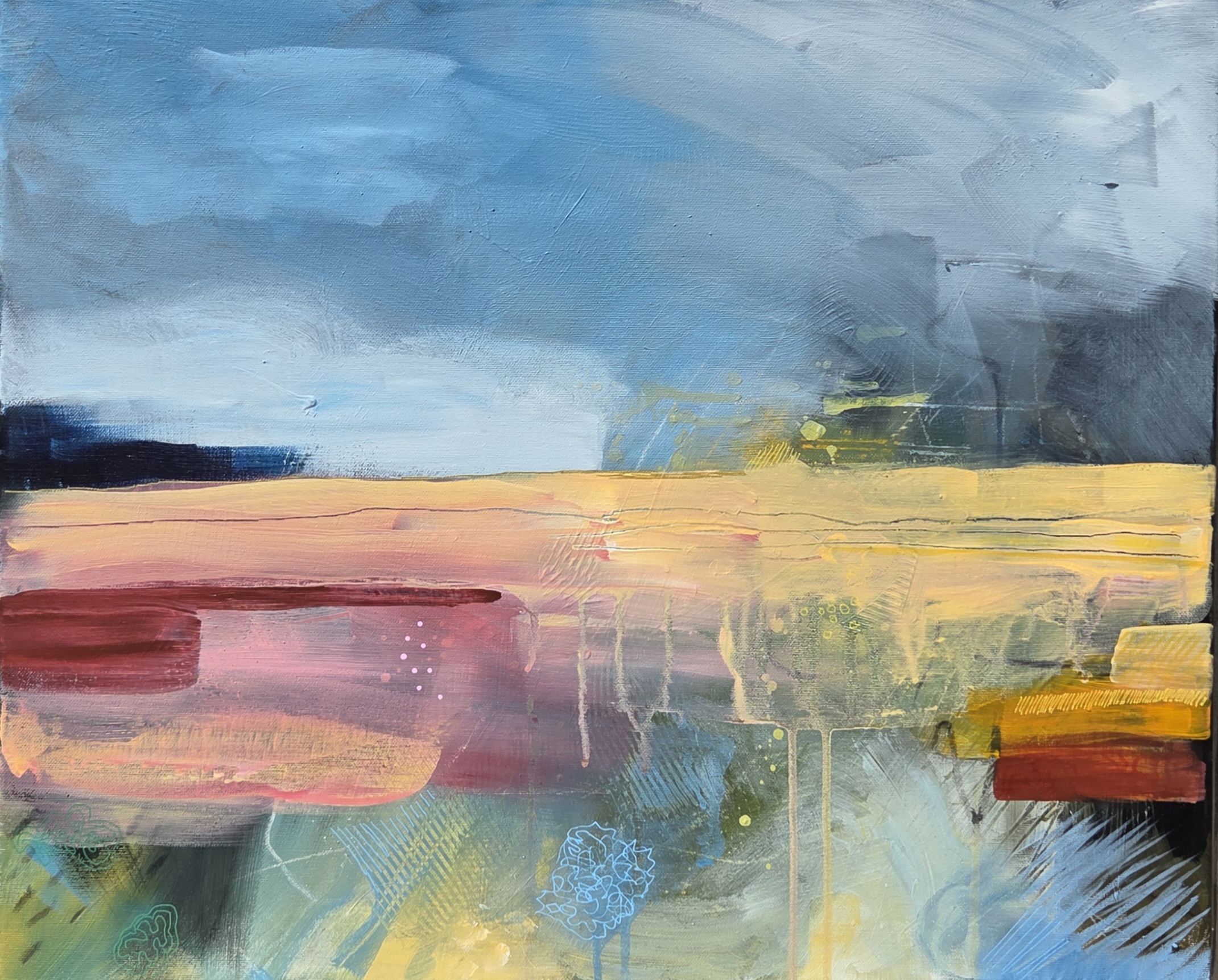Mina akrylmålningar är målade på duk, papper eller panå.