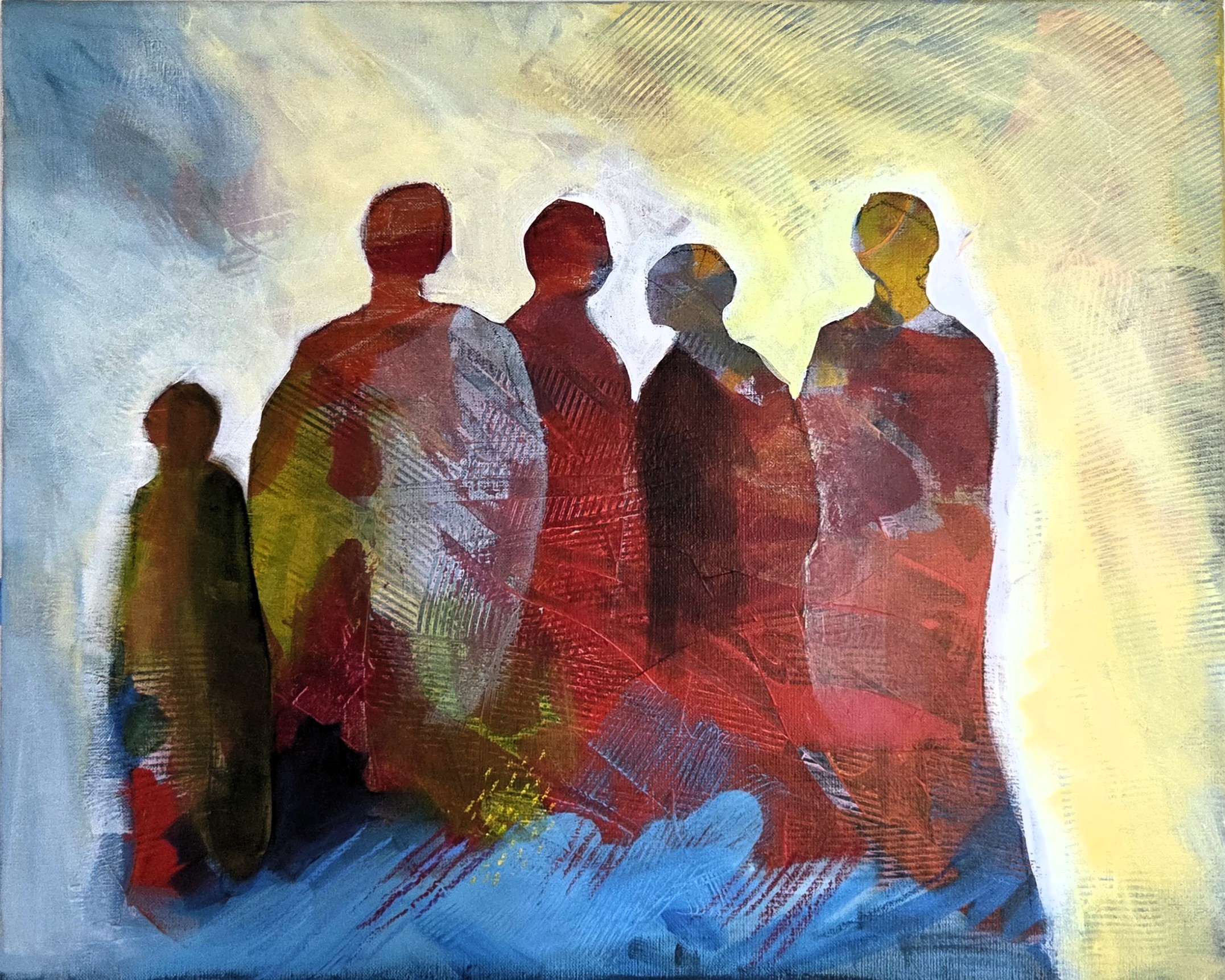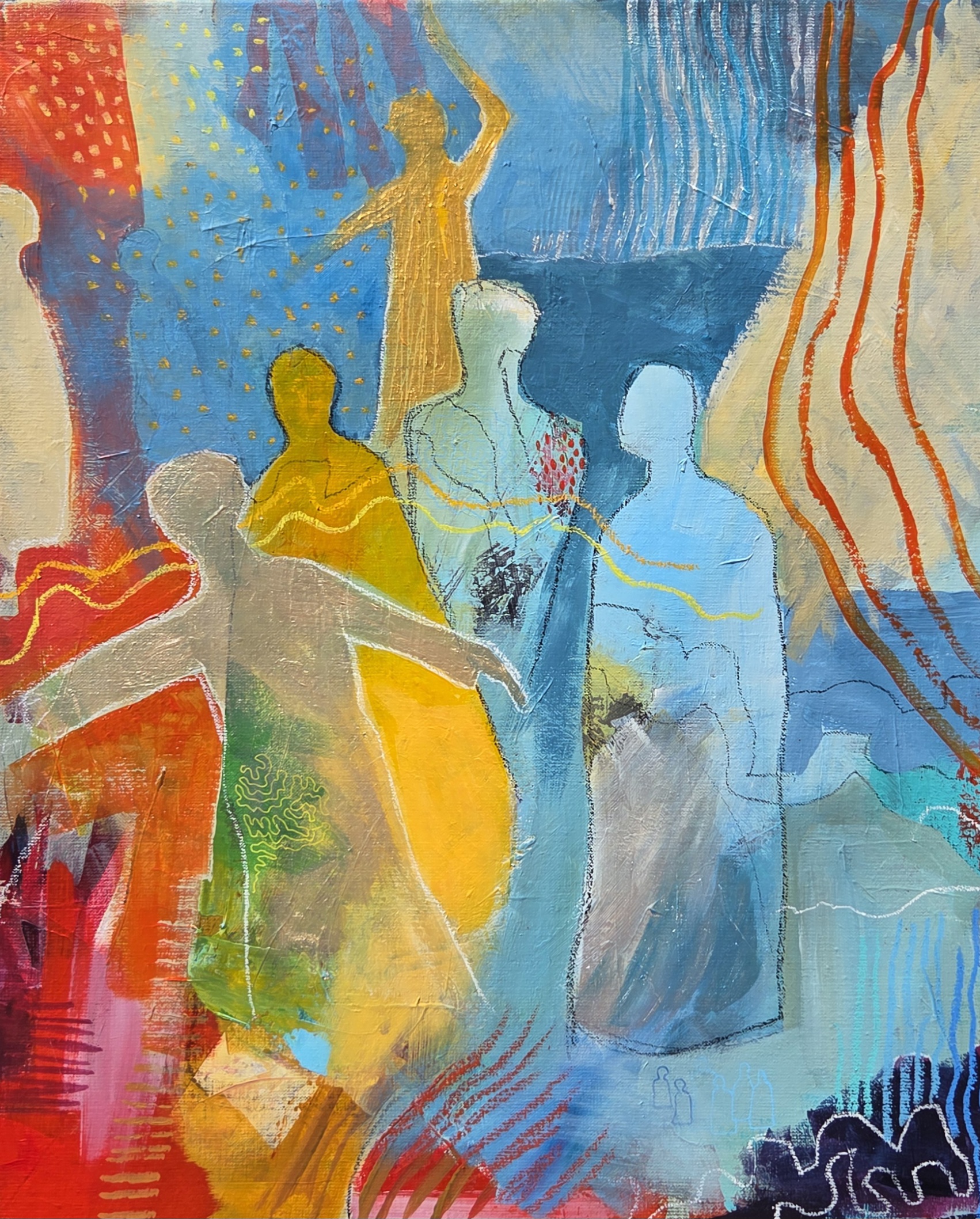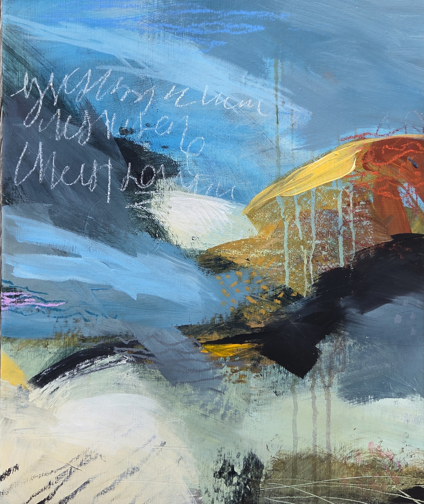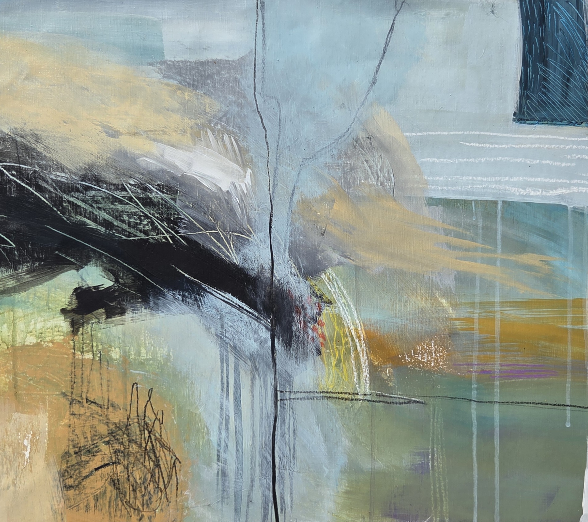 Mina akrylmålningar är målade på duk, papper eller panå.