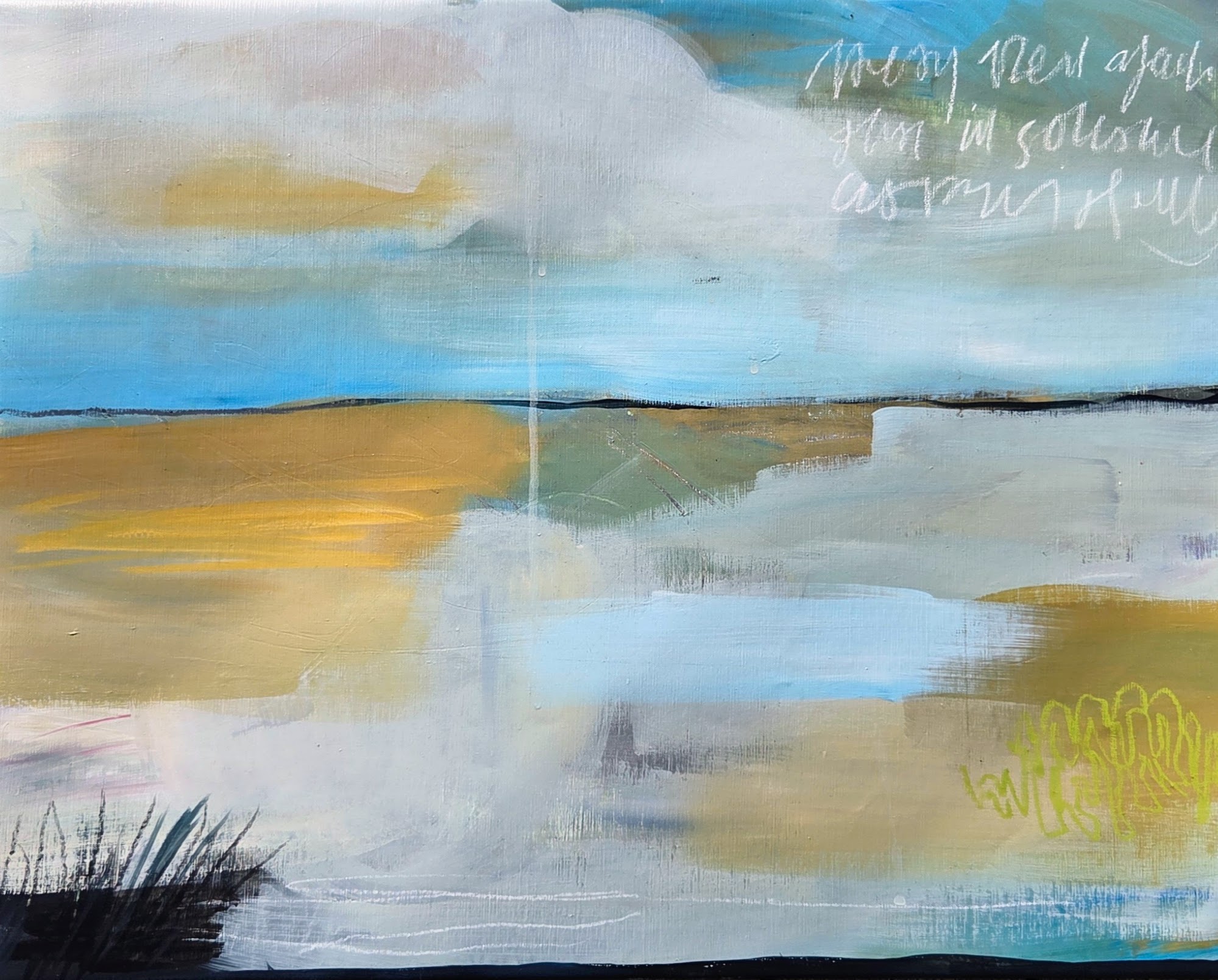 Grekiska ainigma — gåta. I processen med den här målningen ville jag följa linjerna i bergen, experimentera med hur naturen flödar gränslöst mellan himmel, hav, berg och växtlighet. När bergen tornade upp sig och blev för bombastiska. Tog jag mig skaparens frihet och gjorde en öppning för himmelen att vara en del av det bestämda berget. Vad blir det då?